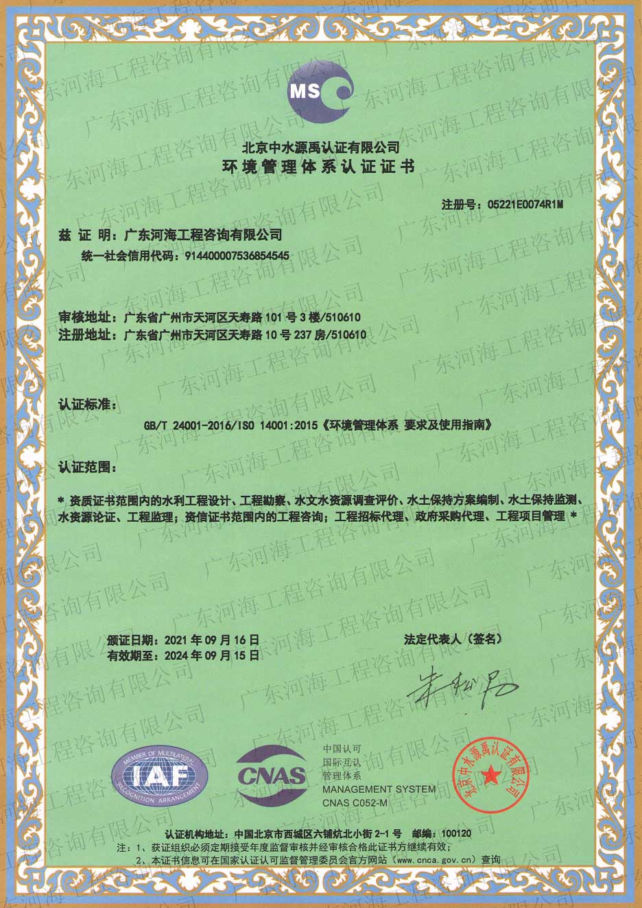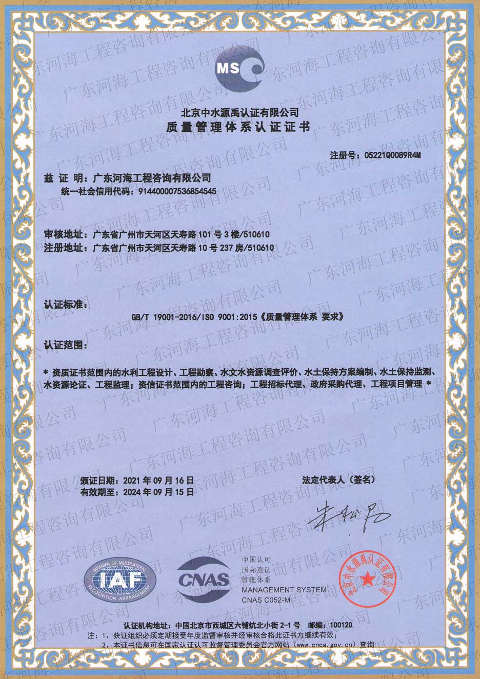 ??????廣東河海工程咨詢有限公司成立于2003年9月。公司具備工程咨詢甲級(jí)資信(含水利水電工程、市政公用工程、生態(tài)建設(shè)和環(huán)境工程專業(yè))證書、水利工程設(shè)計(jì)乙級(jí)資質(zhì)證書、工程勘察巖士工程勘察專業(yè)乙級(jí)資質(zhì)證書、工程測(cè)量專業(yè)乙級(jí)資質(zhì)證書、水文水資源調(diào)查評(píng)價(jià)甲級(jí)水平評(píng)價(jià)證書、生產(chǎn)建設(shè)項(xiàng)目水土保持方案編制單位水平評(píng)價(jià)證書(★★★★)、生產(chǎn)建設(shè)項(xiàng)目水土保持監(jiān)測(cè)單位水平評(píng)價(jià)證書(★★★★)、水資源論證乙級(jí)水平評(píng)價(jià)證書、水利工程施工監(jiān)理甲級(jí)及水土保持工程施工監(jiān)理甲級(jí)資質(zhì)證書、廣東省建設(shè)項(xiàng)目工程環(huán)境監(jiān)理甲級(jí)能力評(píng)價(jià)證書、市政公用工程和房屋建筑工程及電力工程施工監(jiān)理乙級(jí)資質(zhì)證書、地質(zhì)災(zāi)害治理工程監(jiān)理乙級(jí)資質(zhì)證書等,具有工程招標(biāo)代理、工程造價(jià)咨詢,政府采購(gòu)代理機(jī)構(gòu)資格,系水土保持設(shè)施驗(yàn)收技術(shù)評(píng)估單位、水利安全生產(chǎn)標(biāo)準(zhǔn)化評(píng)審機(jī)構(gòu)、農(nóng)村水電站安全生產(chǎn)標(biāo)準(zhǔn)化評(píng)審機(jī)構(gòu),以上資質(zhì)及資格為企業(yè)的業(yè)務(wù)拓展奠定了良好的基礎(chǔ)。